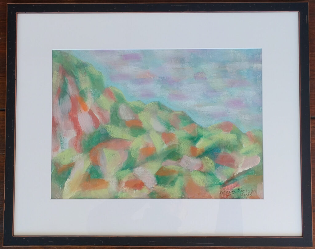 A number of guests very kindly gifted us art that they had created during (or after) their stay here. Below are works by (in clockwise order, from top left) Grace Westwood, Sally Tyrell, Gregg Simpson and John Ronayne (John also kindly gifted an LED desk lamp and magnifying glass for the library, for use by future guests):